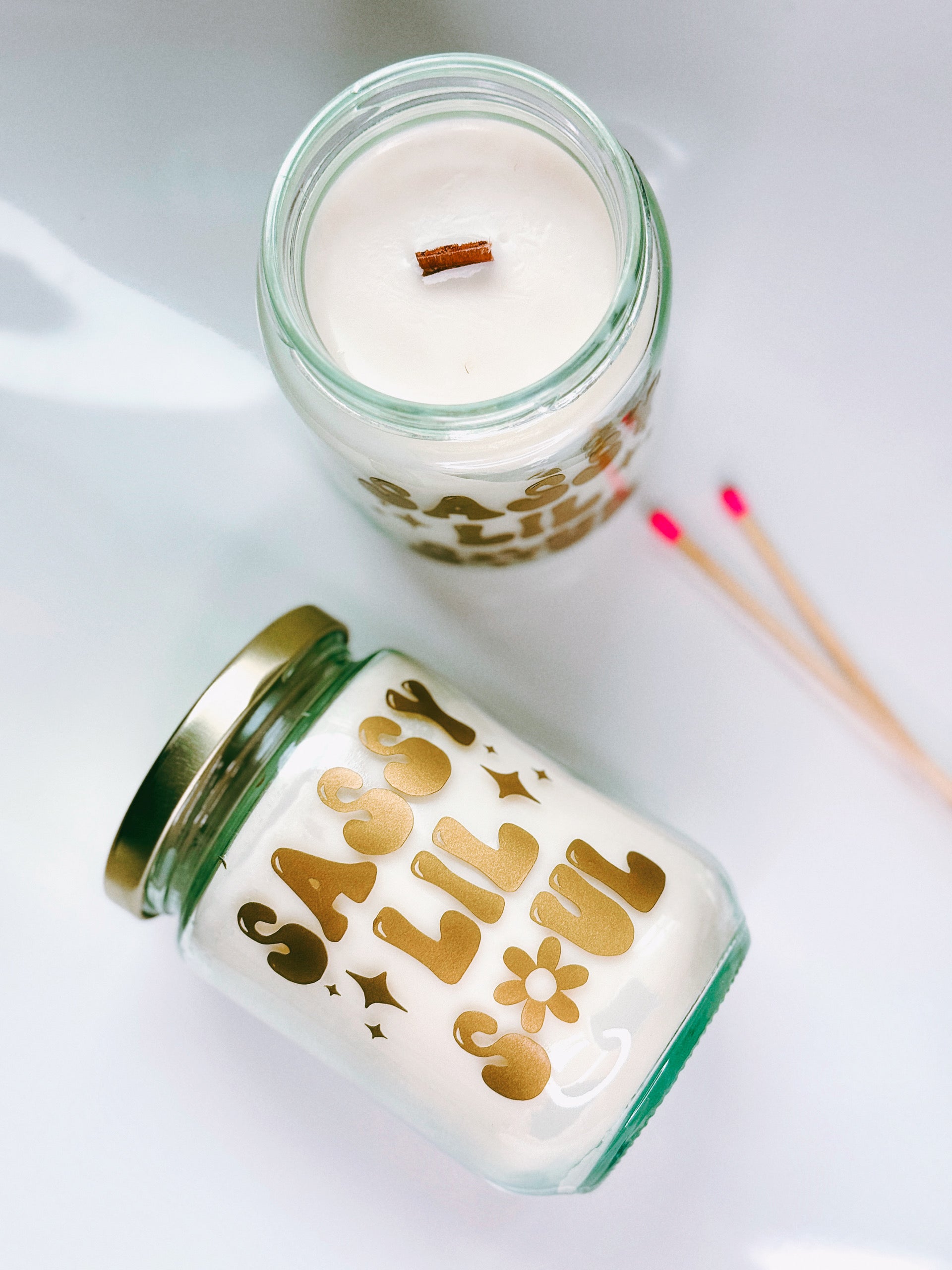 12.5oz conversation candles - ASSORTED DECALED JARS ** in Coconut Cream 🥥